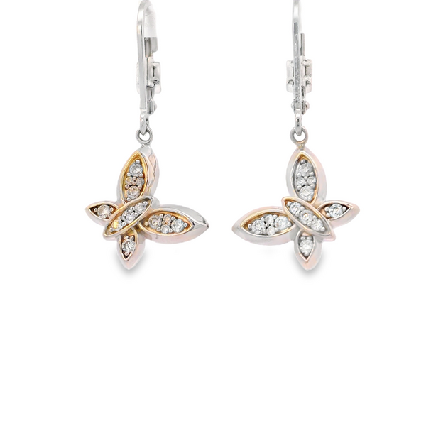 Sterling Silver Earrings with CZ Butterfly (12x10mm), Lever Back, Rhodium Plated