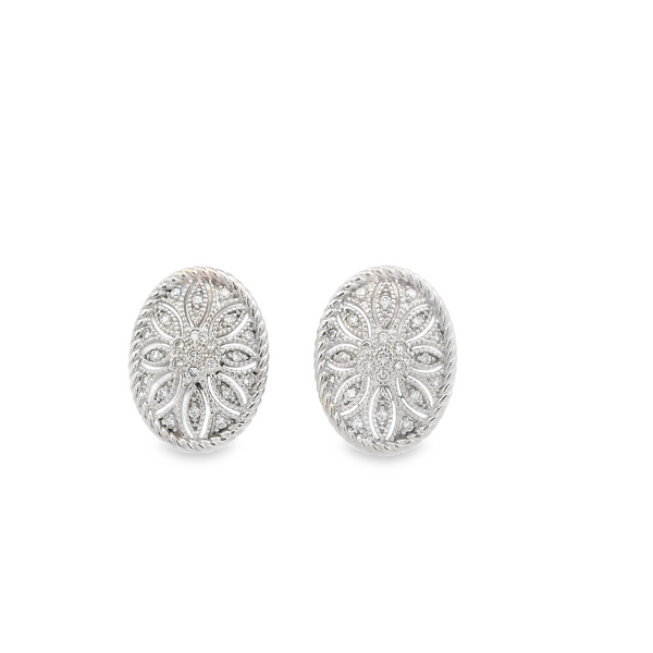 STERL SILVER EARRING with MISC EARRINGS SS CZ OVAL FILIGREE STATEMENT FLOWER EARRINGS