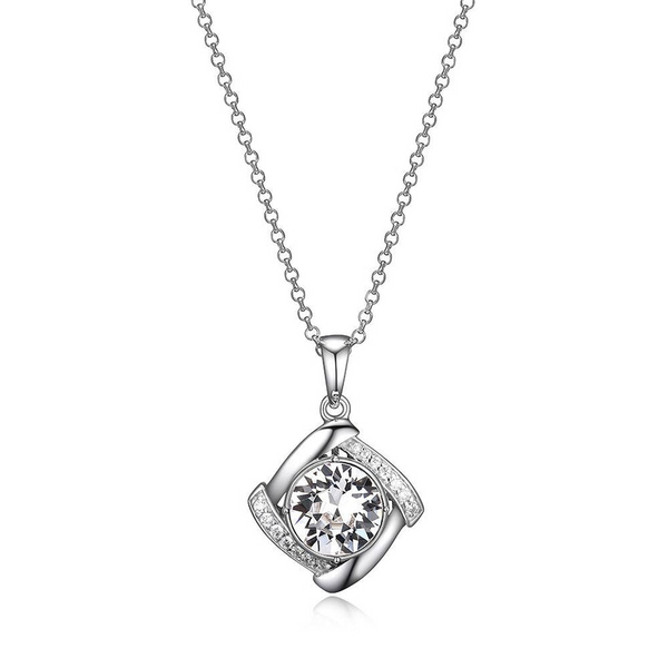 SS Necklace Made with Clear Swarovski Crystal and CZ, 17"+2", RP