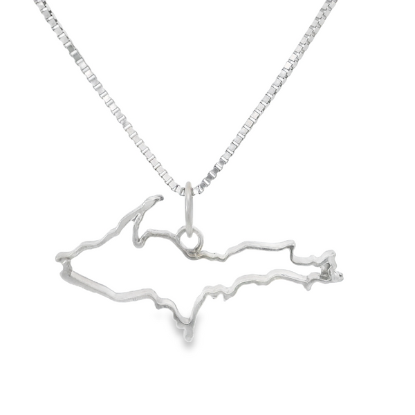 STERL SILVER NECKLAC with WG/SILVERTONED SS UPPER PENINSULA OUTLINE PENDANT