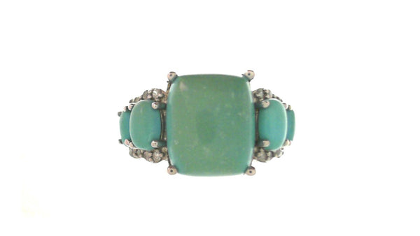 SS TURQUOISE RING WITH HALO OF CZ AROUND THE SIDE STONE