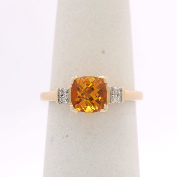 CITRINE RING with YG/YELLOW TONED 14KY D=.026CTTW CITRINE CUSHION CUT RING