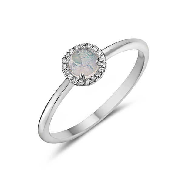 Lady's Rosé 14 Karat Pendants With One Round Opal And 3=0.02Tw Round G/H Si2 Diamonds