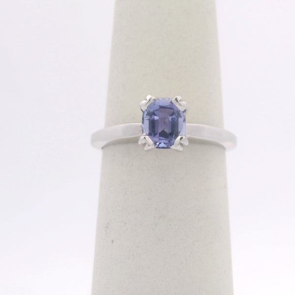 TANZANITE RING with WG/SILVERTONED 14KW TANZANITE=.75CT CUSHION CUT SOLITAIRE RING