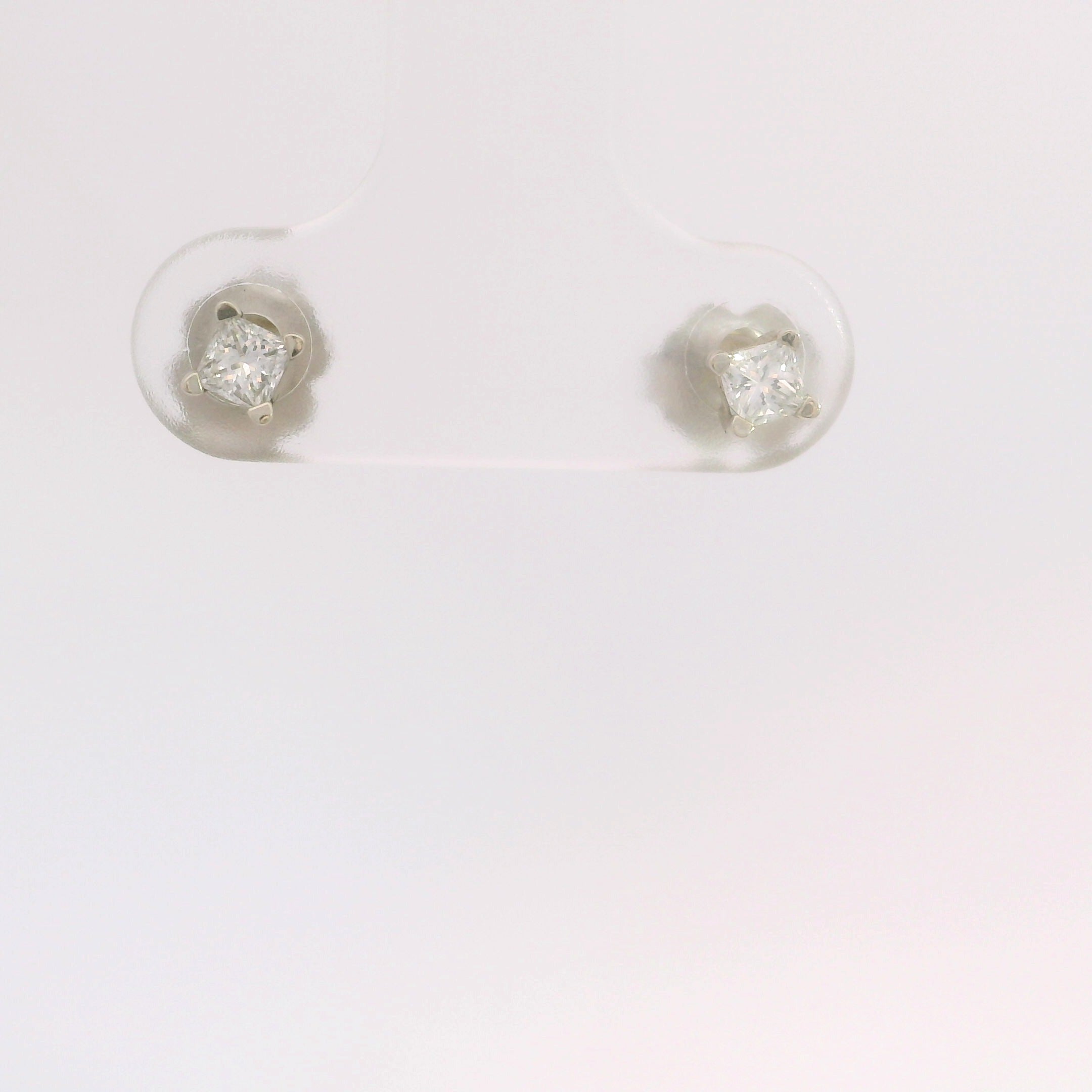 Lady's White 14 Karat Earrings 2 = 0.18tw Princess G/H SI1 Diamonds
