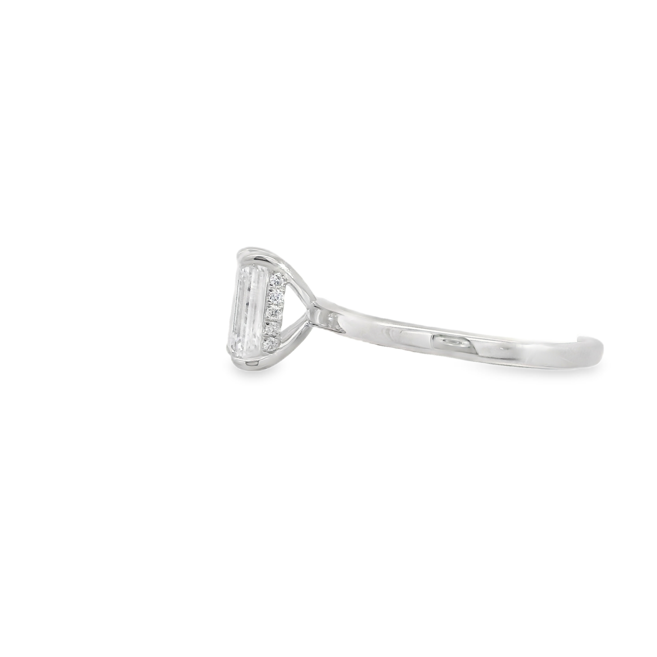 Lady's White 14 Karat Engagement Ring Size 6 With One = 1.10Ct Emerald E Vs1 Created Diamond And = 0.12Tw Round E Vs1 Created Diamonds