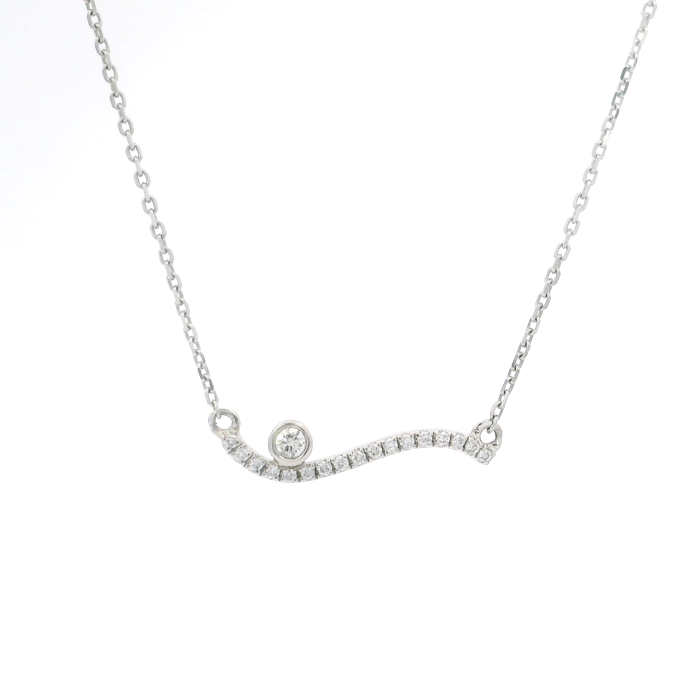 DIA PENDANT/SLD/NECK with WG/SILVERTONED 14KWG .15DWT WAVY BAR DIANECKLACE