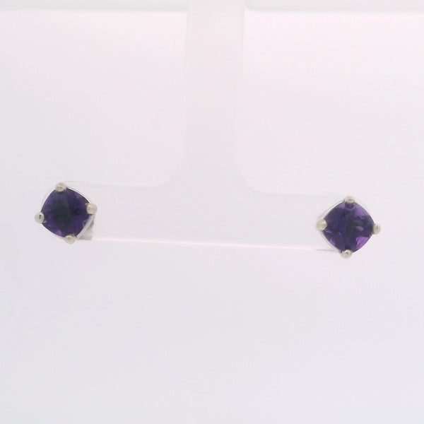 AMETHYST EARRINGS with WG/SILVERTONED 14KW AMETHYST 6MM CUSHION EARRINGS