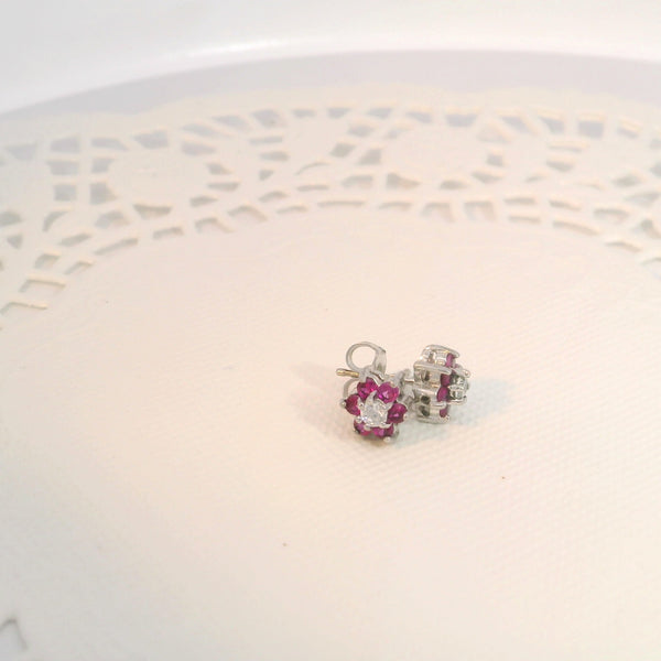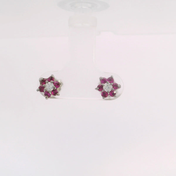 14k WG RUBY AND DIAMOND FLOWER EARRINGS