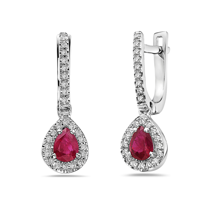 Leverback Pear Ruby drop, with Dia Halo