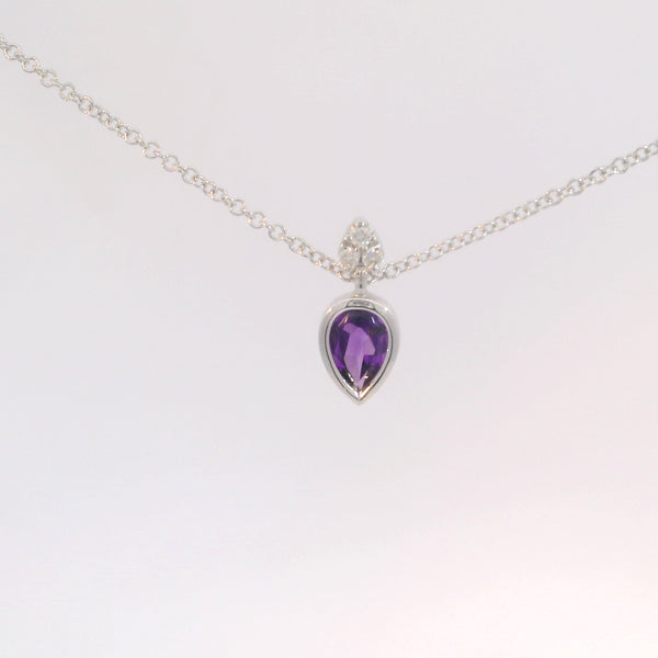 DIA PENDANT/SLD/NECK with WG/SILVERTONED 14KW D=.03CTTW AMETHYST=.34CT PEAR SHAPED BEZEL SE