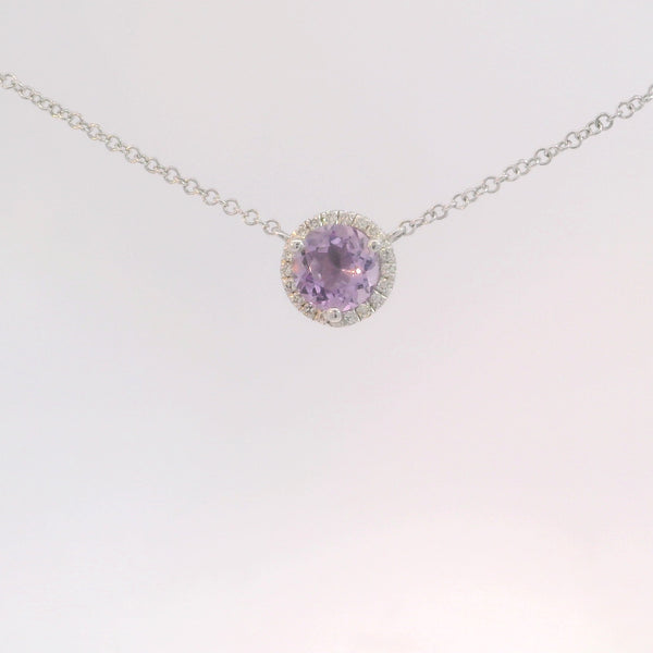 DIA PENDANT/NECK with WG/SILVERTONED 14KW D=.07CTTW PINK AMETH69CT HALO PENDANT