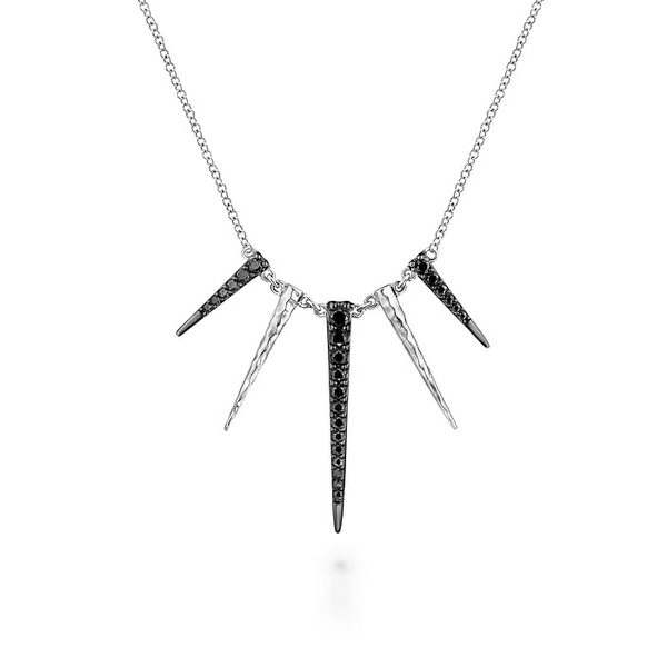STERLING SILVER BLACK SPINEL MUTI SPIKE NECKLACE