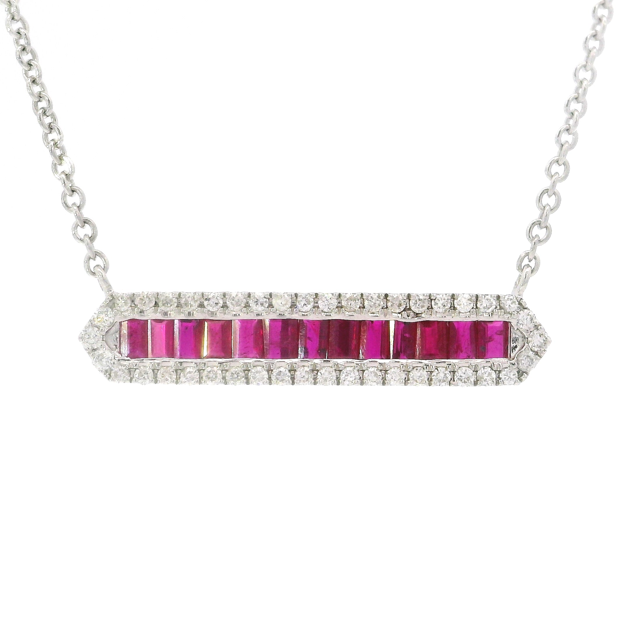 14K WHITE GOLD RUBY BAR NECKLACE