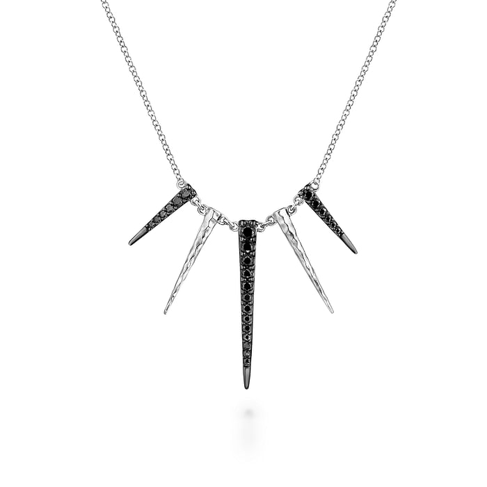 STERLING SILVER BLACK SPINEL MUTI SPIKE NECKLACE