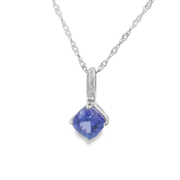 TANZANITE PEN/SLID/N with WG/SILVERTONED 14KW D=.01 TANZ=1.10CTTW CUSHION CUT PENDANT