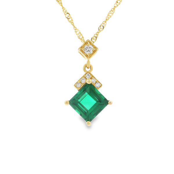 EMERALD SLID/PEND/NE with WG/SILVERTONED 14KW D=.02CT EM=.75CT PEAR SHAPE EMERALD PEND