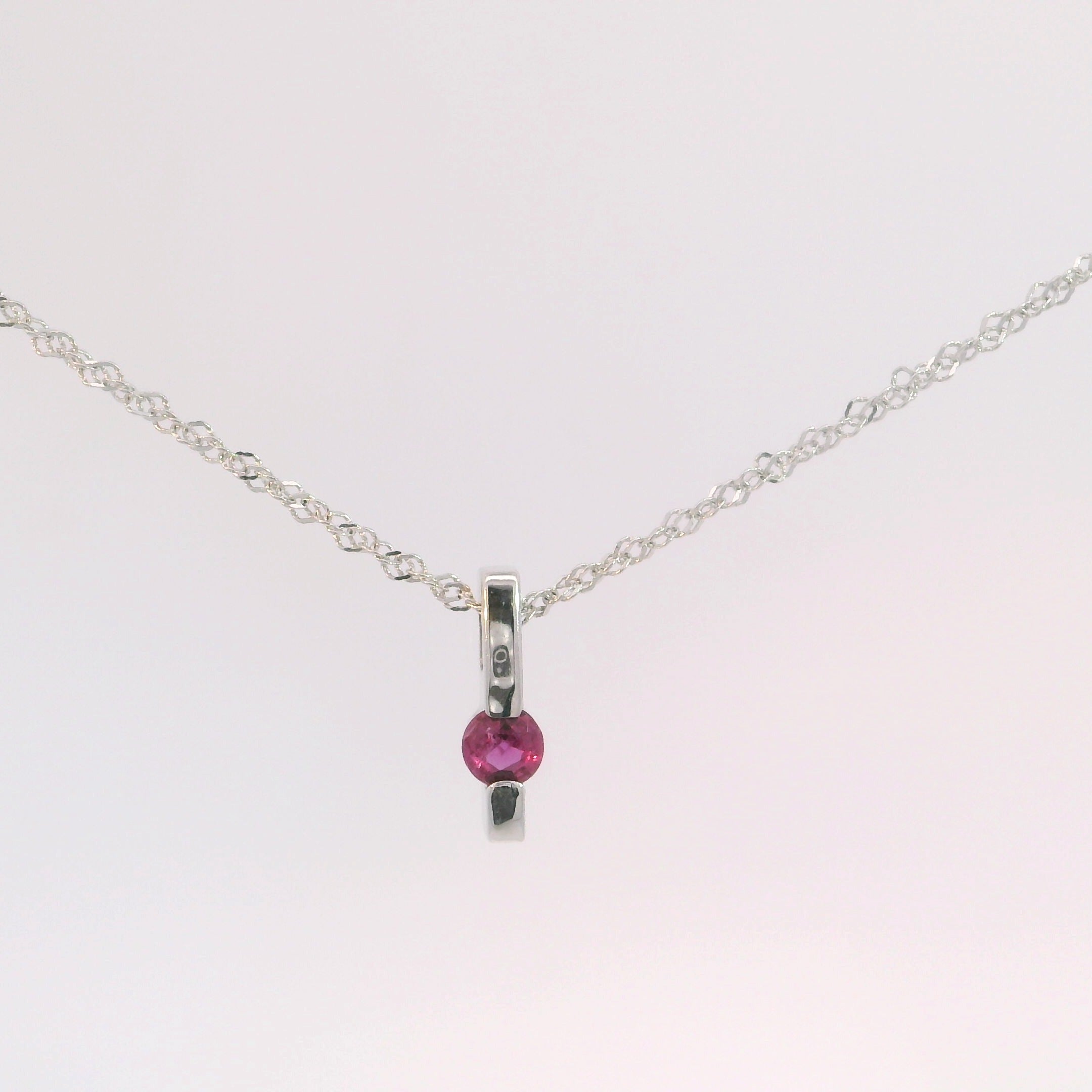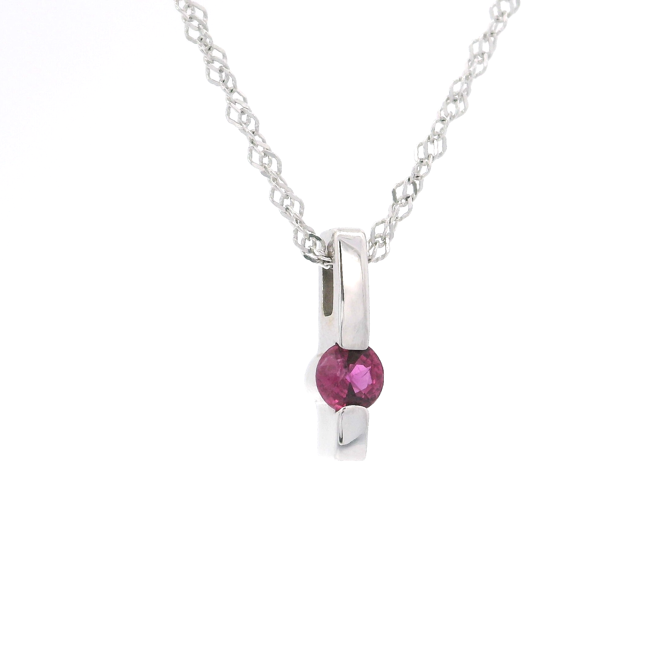 RUBY PEND/SLID/NECK with WG/SILVERTONED 14KW ROUND RUBY BAR PEND W/ 14KW 18" SINGAPORE CHA