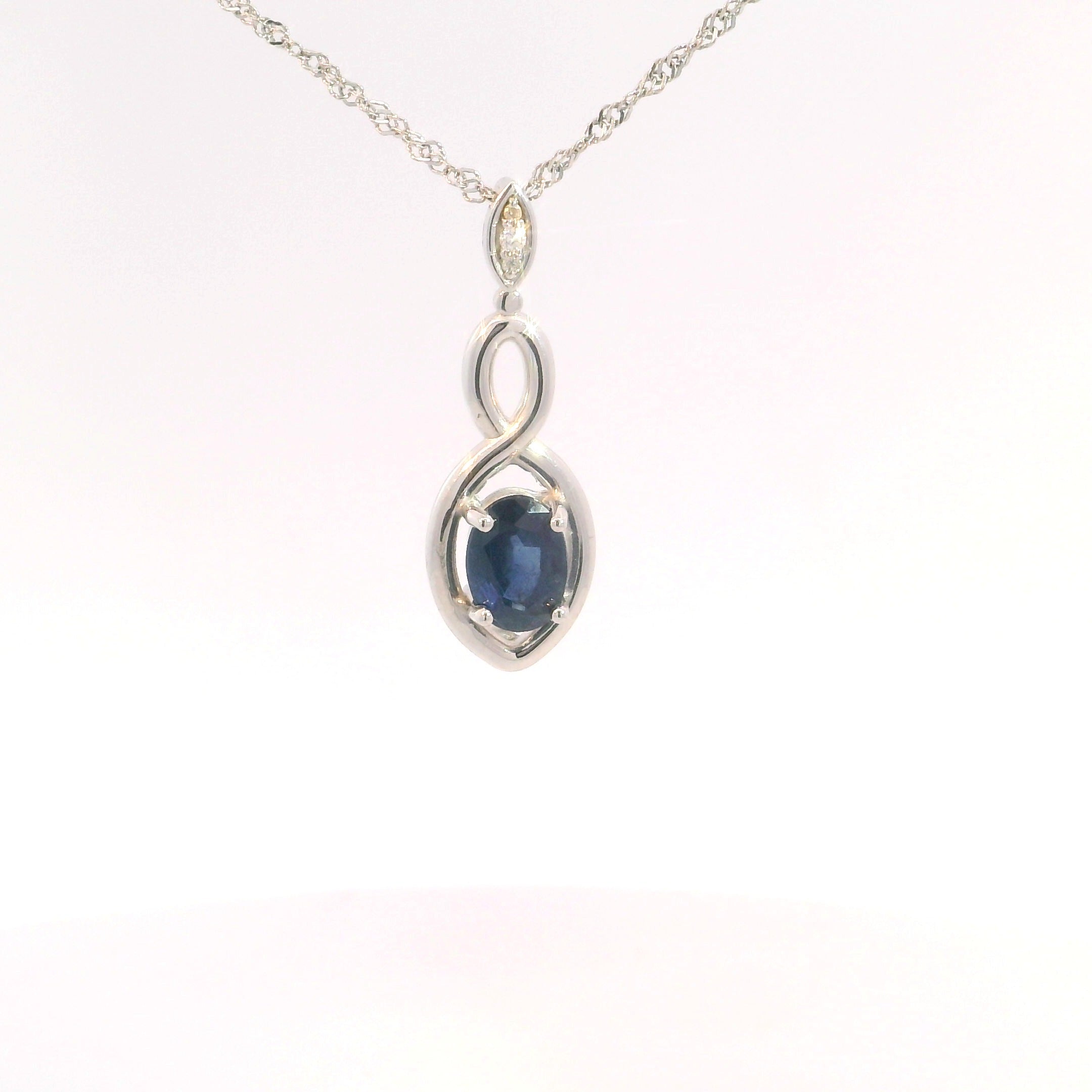 BLUE SAPPHIRE P/S/N with WG/SILVERTONED 14KW BLUE SAPH=1.19CT OVAL W/ APX .055CT DIA PENDA