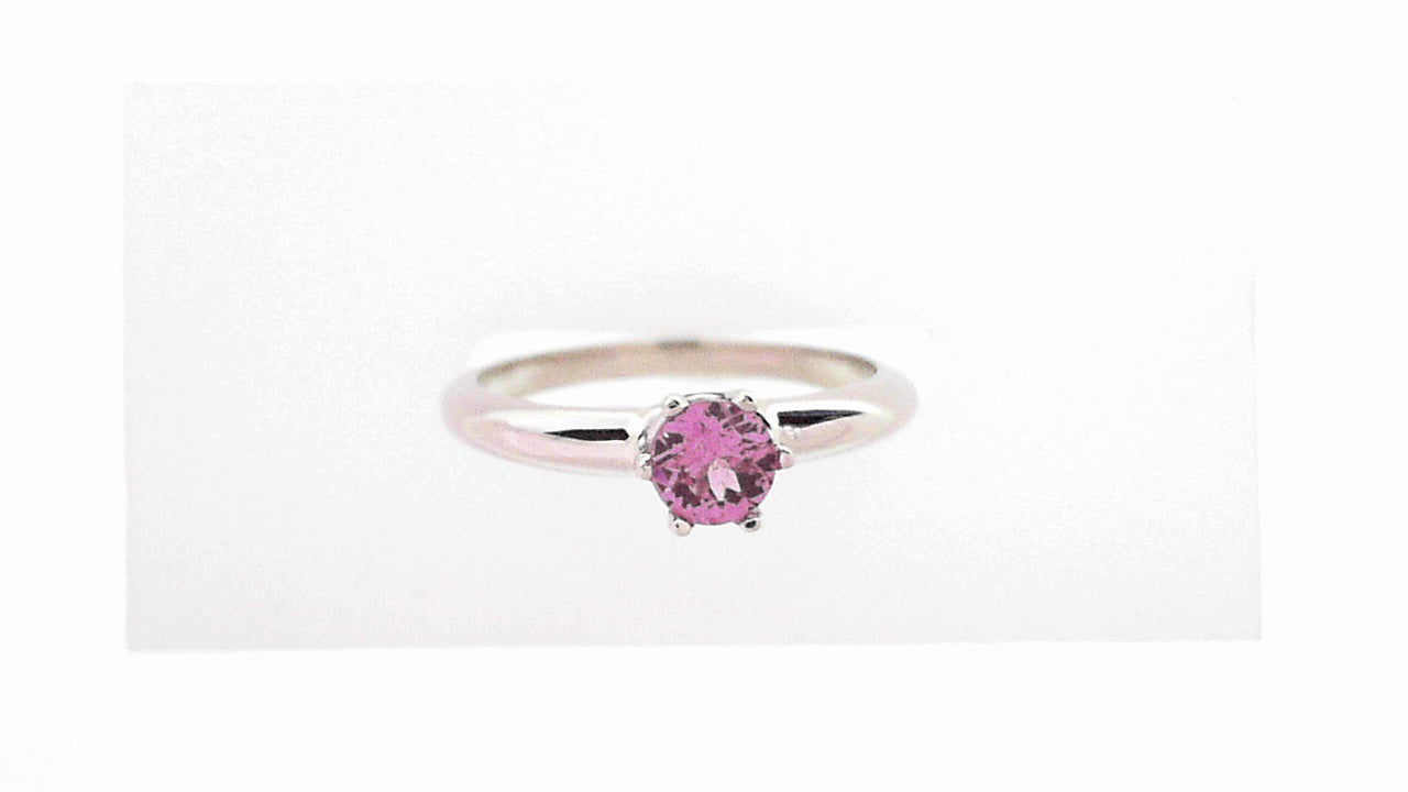 Lady's White 14 Karat Fashion Ring Size 6.25 With One 0.38Ct Round Pink Spinel