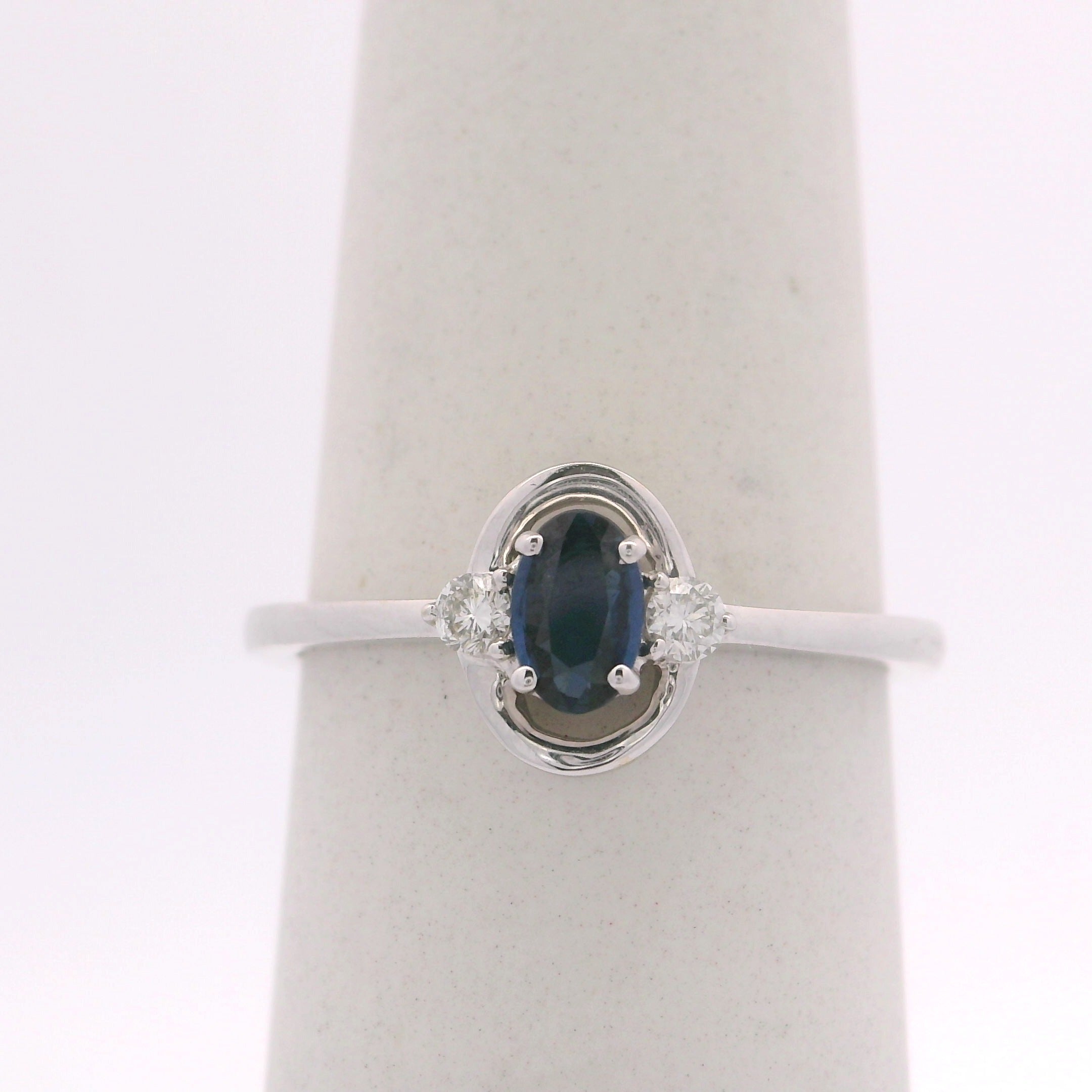 14K WHITE GOLD OVAL SAPPHIRE RING WITH ACCENT DIAMONDS
