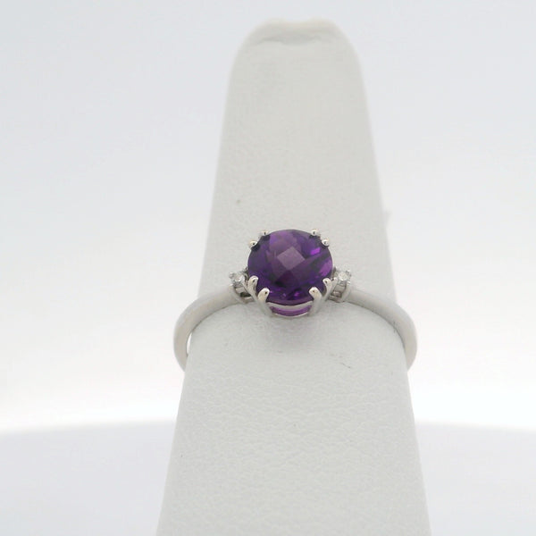 14K WHITE GOLD FAASHION RING W/ AMETHYST AND DIAMONDS