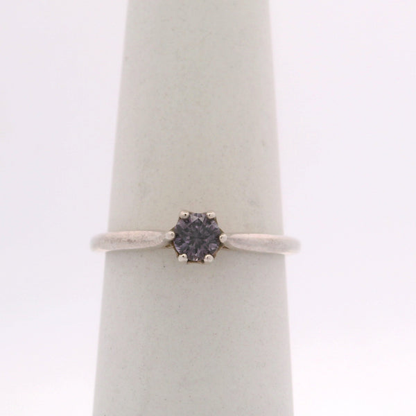 10K WHITE GOLD PROMISE RING WITH A 4MM PINK SAPPHIRE APPROX. .28 CT