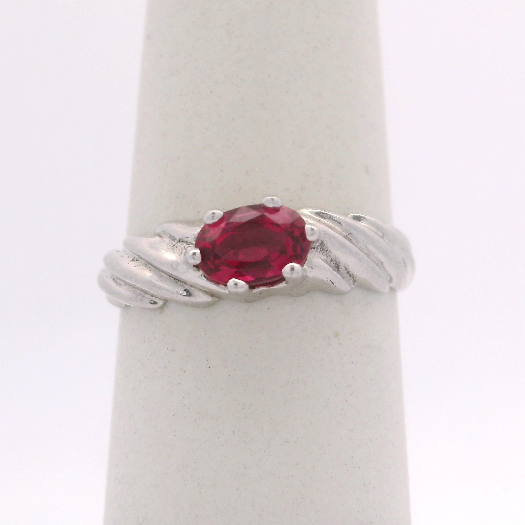 MISC/COLOR RING with WG/SILVERTONED 14KW PINK SPINEL=.73CT CUSHION CUT SOLITAIRE