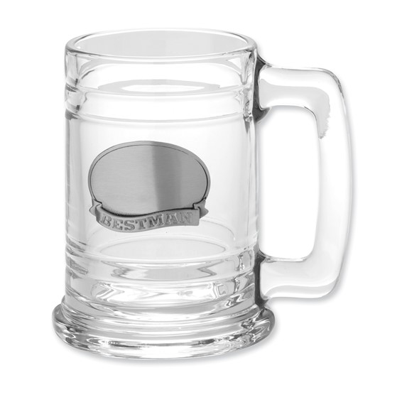 GIFTS (MISC) GROOMSMAN GLASS TANKARD W/ PEWTER PLATE STNLS STL