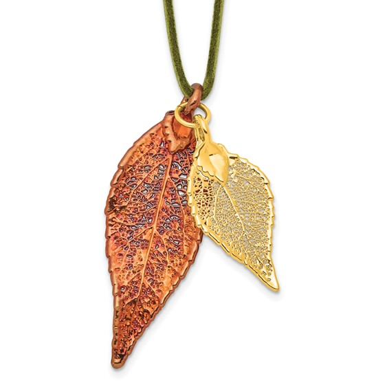 24k rg dipped evergreen leaf on gold tone chain