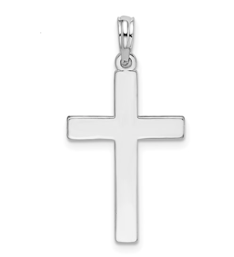 10 KT White Gold Polished Beveled Cross with Round Tips