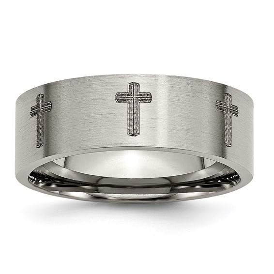 TITANIUM FLAT BAND W/CROSSES BRUSHED BAND