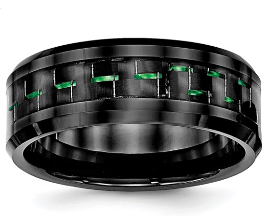 Chisel Ceramic Black w/green Carbon Fiber Inlay Ring