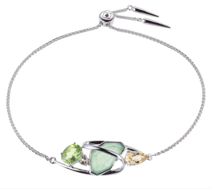 Silver BraceletsSterling Silver Rhodium Plated Brac G Dye Bean Green Quartzite(#2-#4)(A?) 14X8X3mm and G Peridot(A3-A5)(B) Ov 8X6mm and G Citrine(A3-A5) Pr 8X5mm and G Lemon Quartz(A) Rd 3mm #030 Round Wheat Chain 9"U