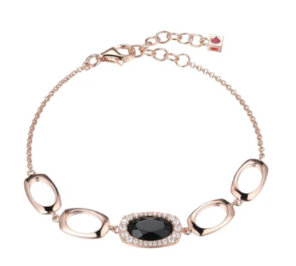 Silver BraceletsSterling Silver Bracelet with Oval Shape Genuine Black Agate (11X7X3.5mm) and CZ, Measures 6.75" Long, Plus 1.25" Extender For Adjustable Length, Rose Gold Plated