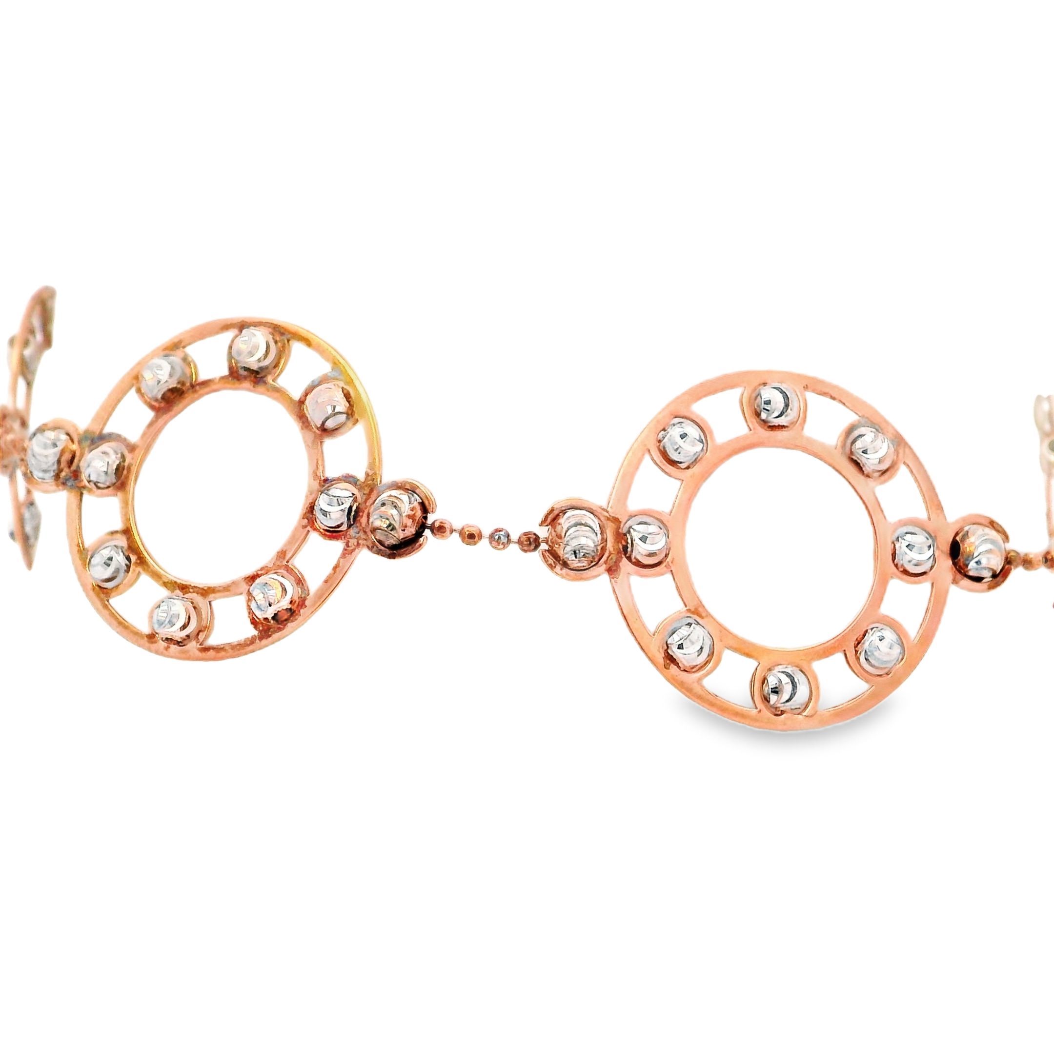 STERL SILVER BRACELE SS 18K ROSE GP/PLAT PL 7" LARGE DOUBLE CIRCLE/W B