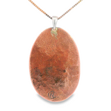 STERLING SILVER DOUBLE SIDED PENDANAT THAT CONTAINS A LARGE OVAL NATURL MOSS AGATE WITH BEZEL SET...