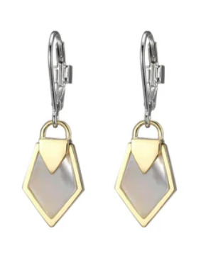 STERL SILVER EARRING with YG/YELLOW TONED SS YP LOCK & KEY MOP DANGLE EARRINGS
