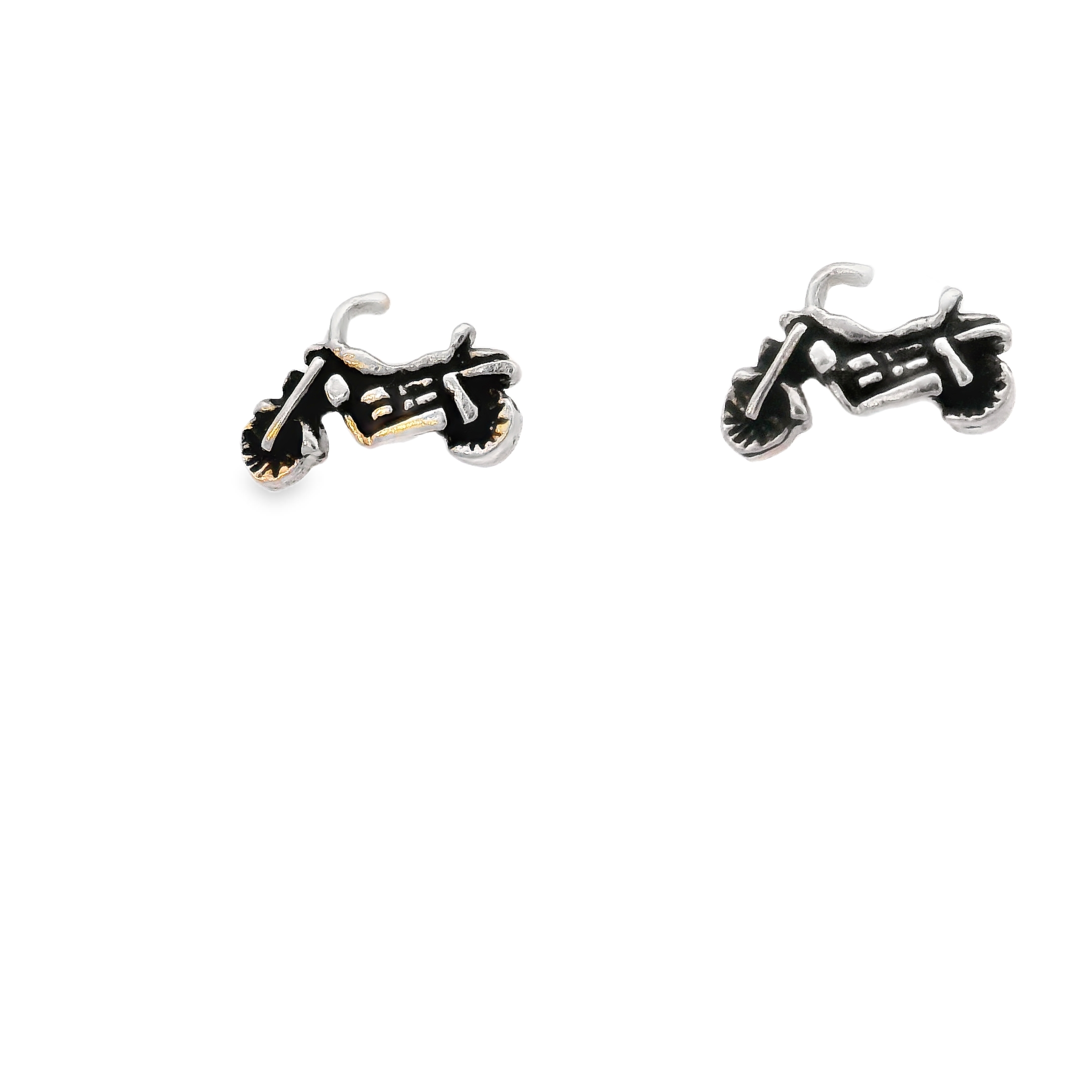 STERLING SILVER RHODIUM-PLATED ANTIQUED MOTORCYCLE POST EARRINGS