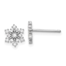 SS RHODIUM POLISHED CZ SNOWFLAKE EARRINGS