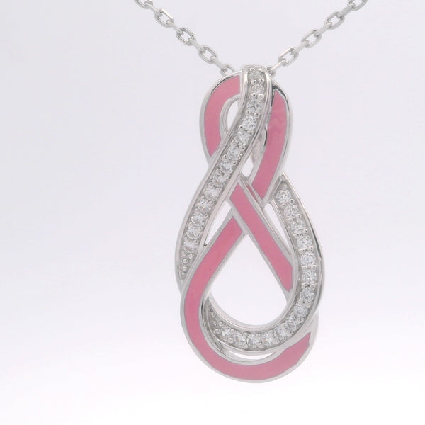 STERL SILVER NECKLAC with WG/SILVERTONED SS CZ 18" PINK ENAMAL BREAST CANCER NECKLACE