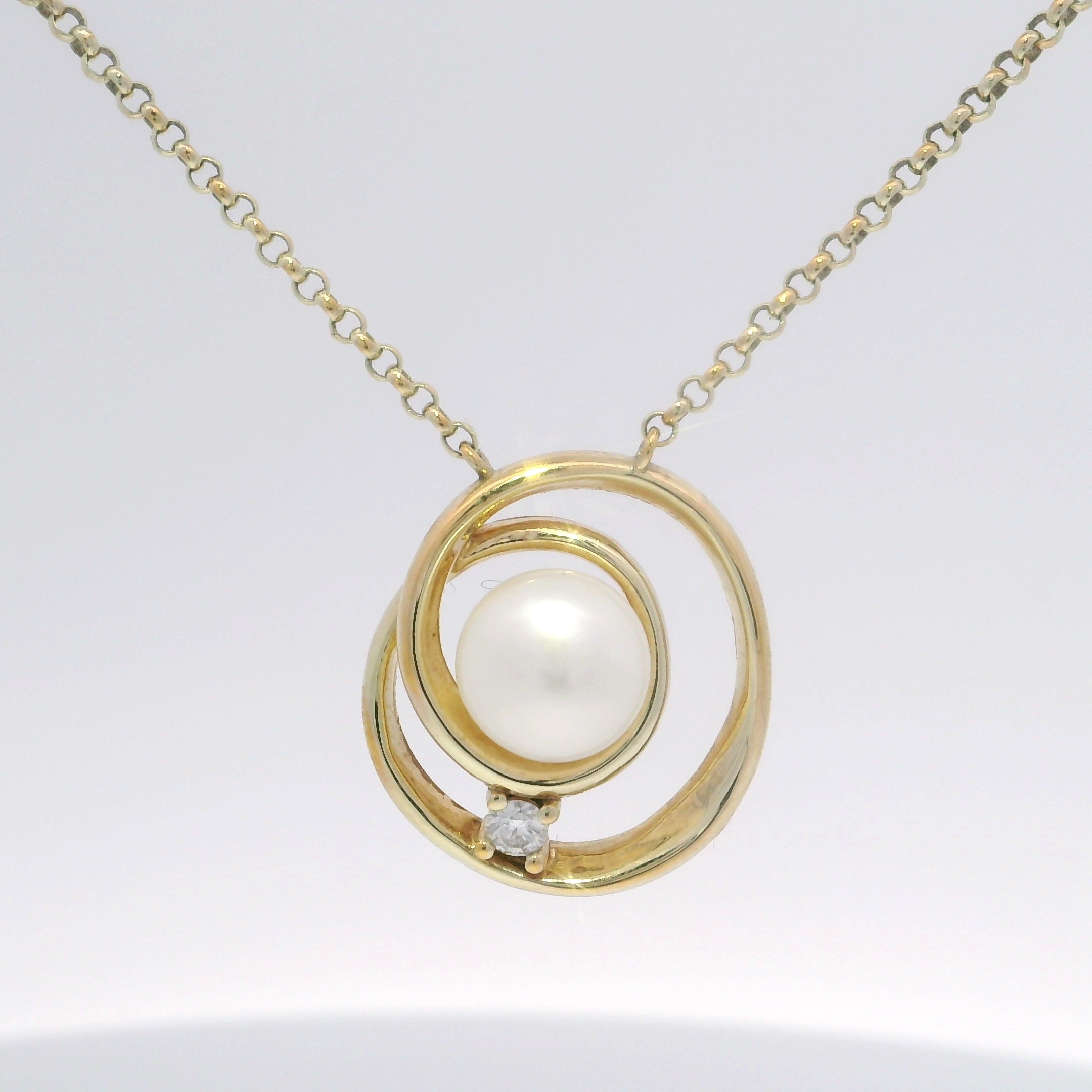 Sterling Silver ELLE "Satelite" yellow gold Plated Genuine Freshwater Pearl Pendant on Rolo Chain 17"+3" gold plated