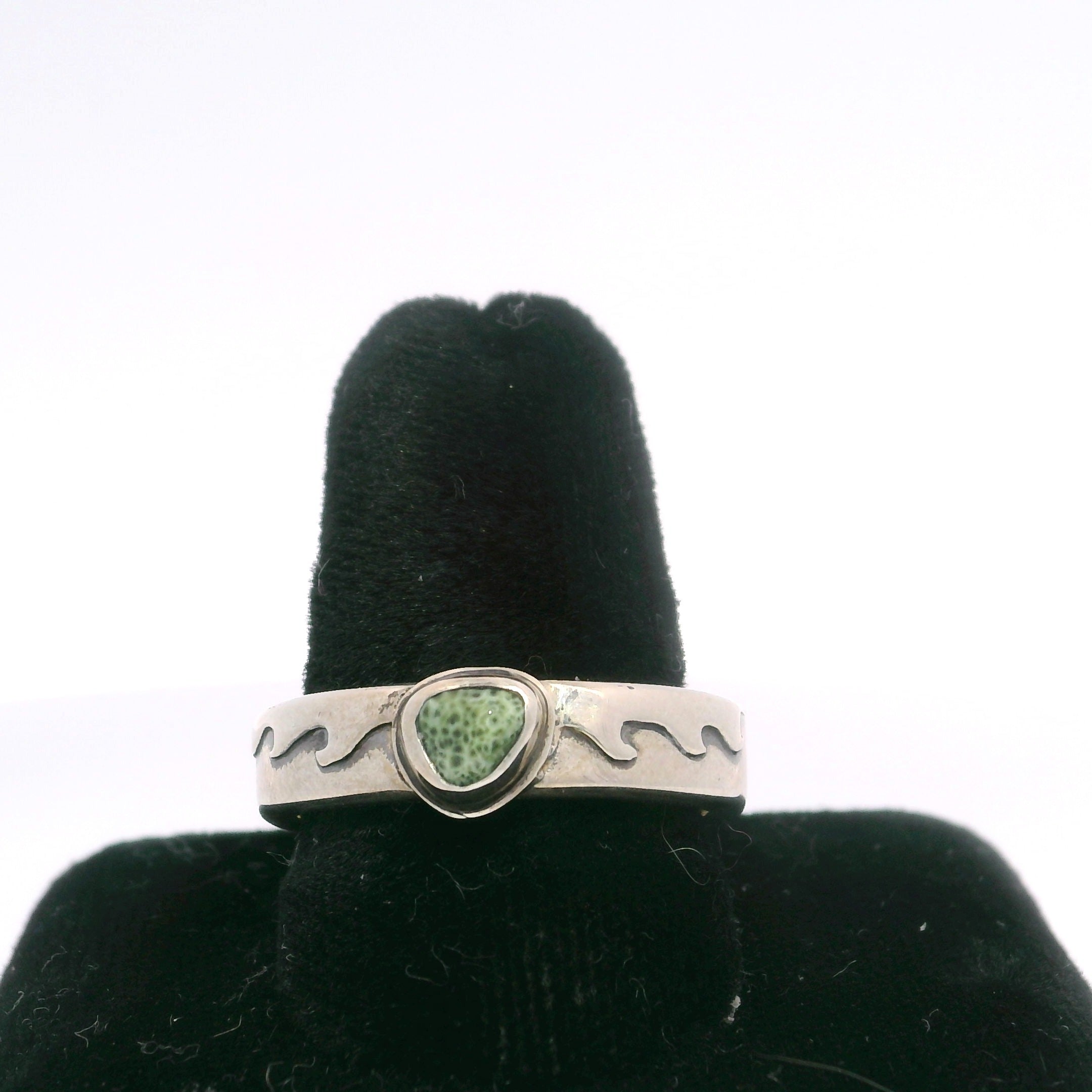 SS MI Green Stone Wave Ring Size 8
