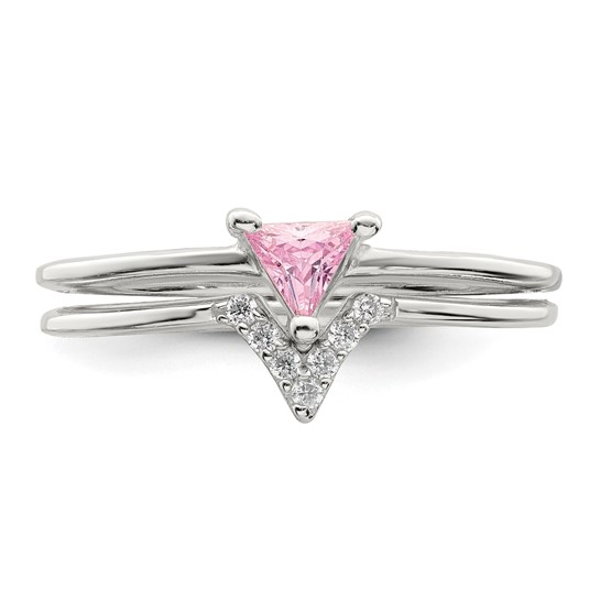 SS Pink Trillion CZ and White CZ Ring Set
