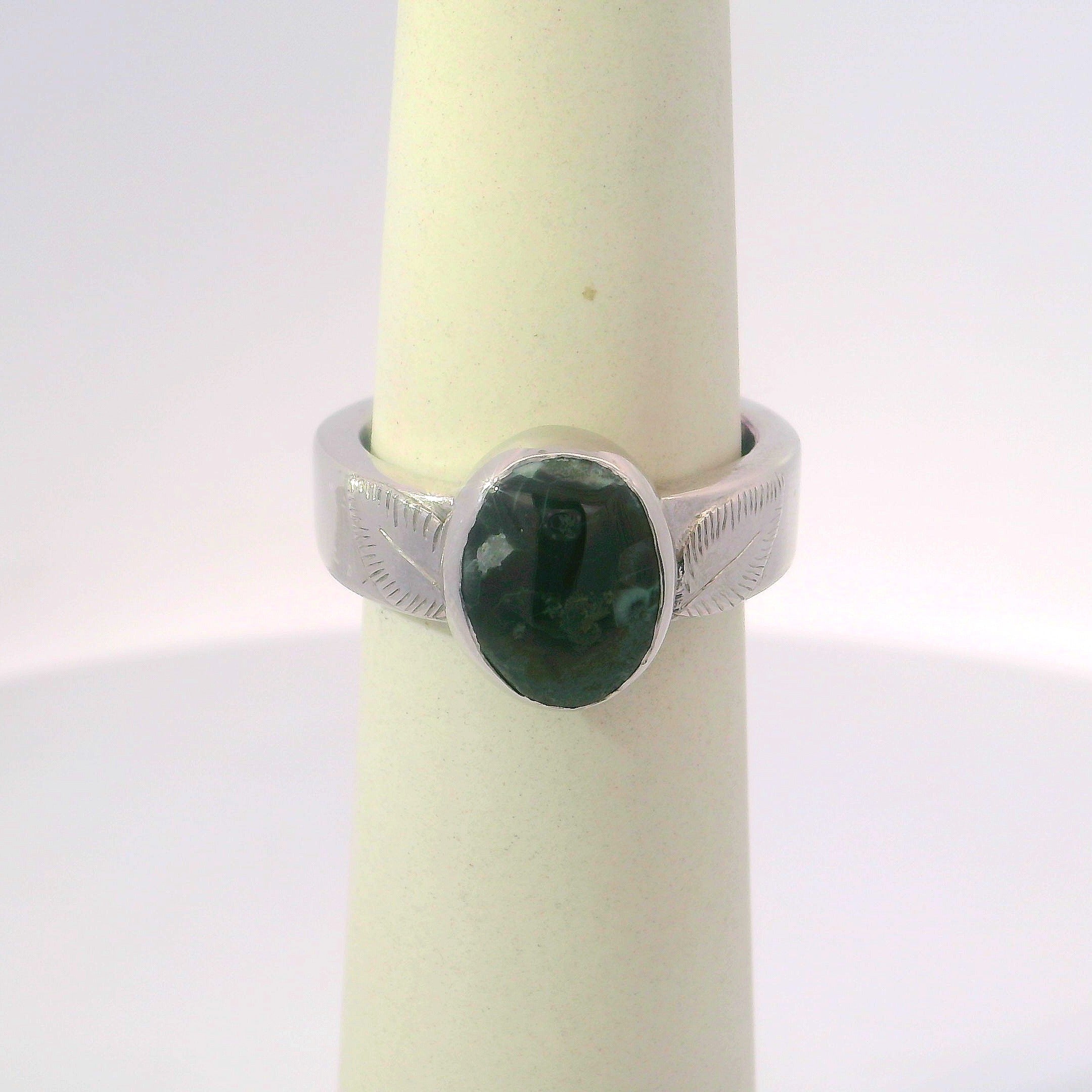 STERLING SILVER COPPER AGATE RING HAND CRAFTED BY NINA LEHTO, ENGRAVED WITH DELICATE BIRD DETAILS...