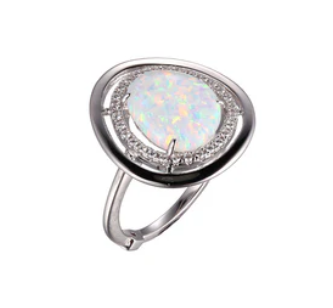 Sterling Silver Rhodium Plated Ring #Op17 Synthetic Opal(Fireandsnow) (Cab) 11.5X9.5mm and 3A CZ RD