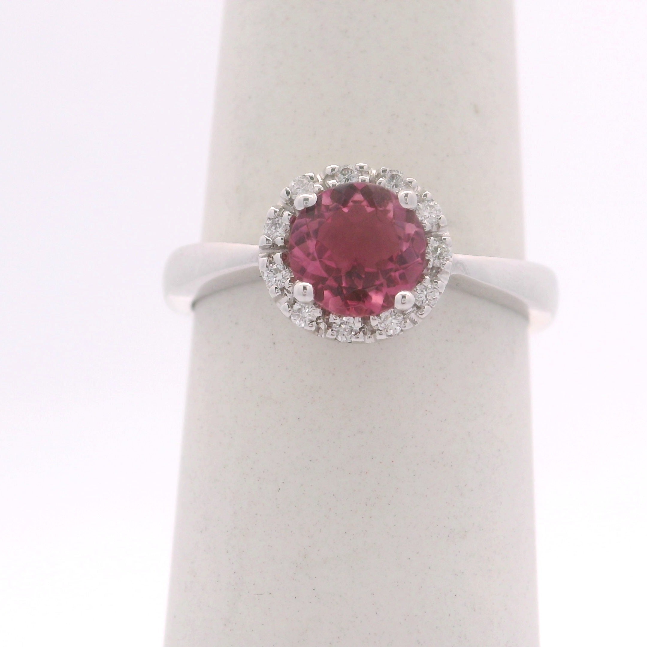 MISC/COLOR RING with WG/SILVERTONED 14KW PINK SPINEL=.73CT CUSHION CUT SOLITAIRE