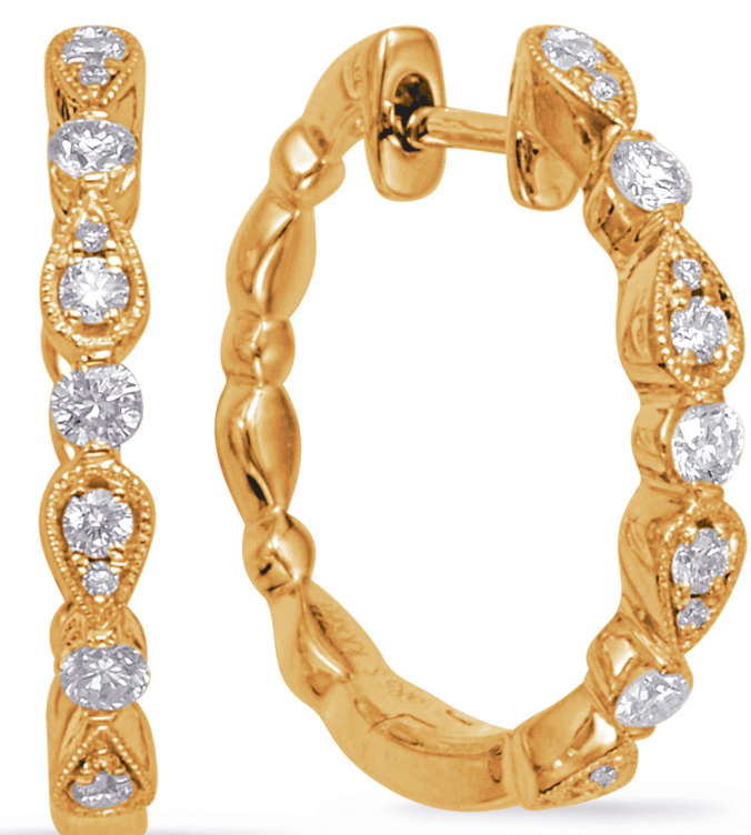 DIAMOND HOOP EARRING with YG/YELLOW TONED 14KY DTW-.32 DIAMOND HOOP EARRINGS