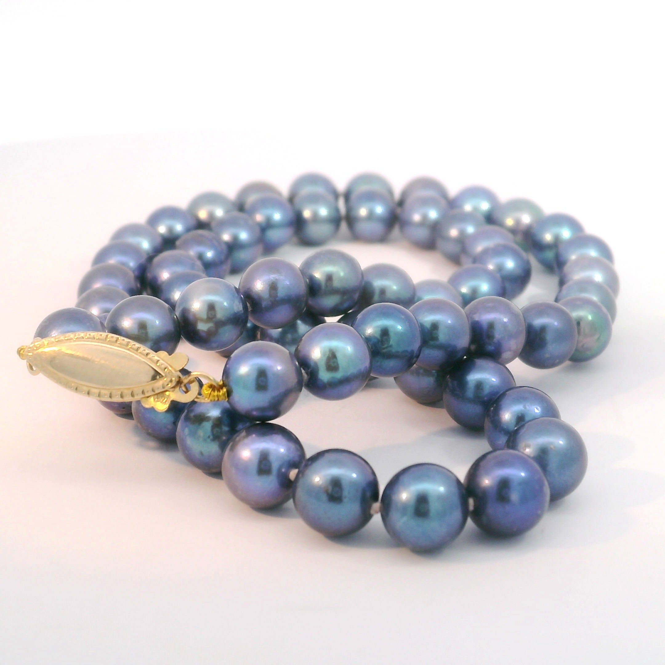 Lady's Yellow 14 Karat Strand Length 16 BLUE AKOYA PEARL NECKLACE