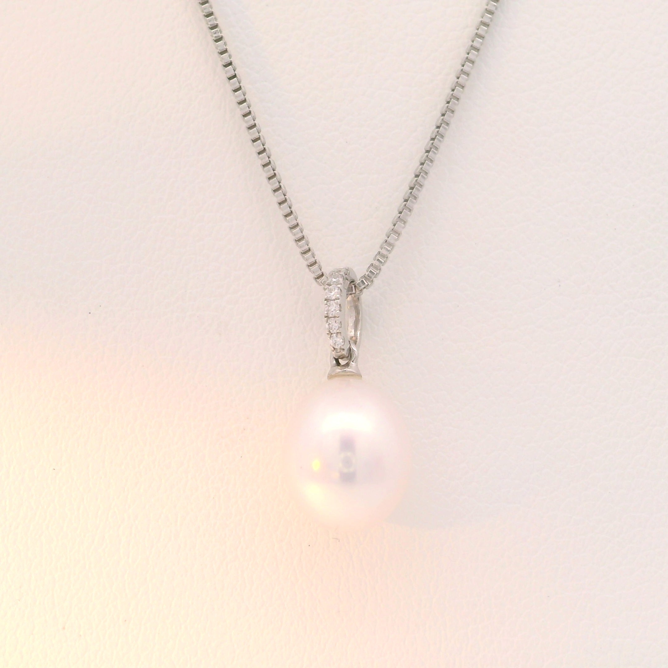14 kt white FWP and diamond pendant